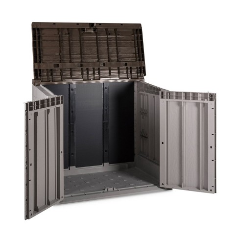 Some storage yards will offer the option of storing your caravan indoors in a warehouse. Select the department you want to search in. Store garden tools, pool equipment and other outdoor essentials in these stylish outdoor storage containers. Outdoor storage sheds can come with or without windows. Keter elite store 4.6 x 2.7 resin outdoor storage shed with floor for trash cans and yard tools.